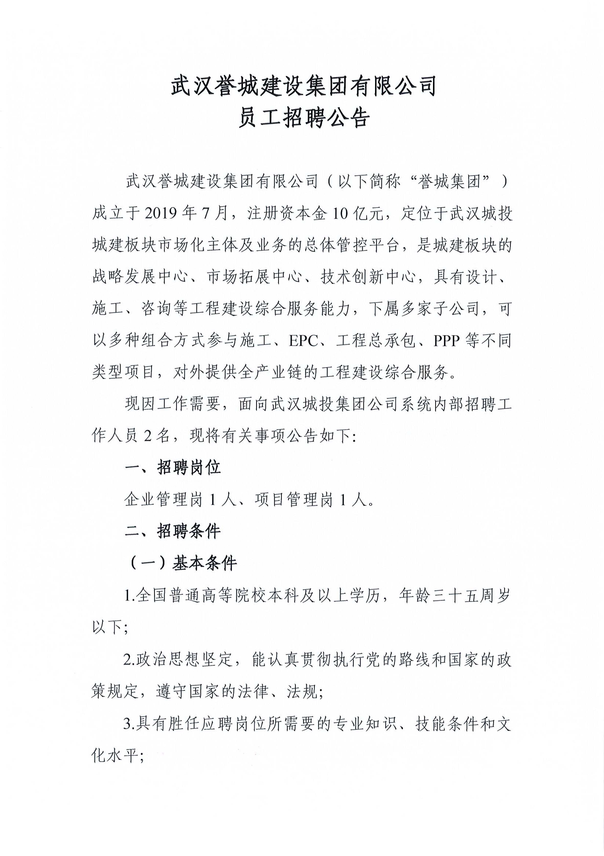 武漢譽(yù)城建設(shè)集團(tuán)有限公司應(yīng)聘公告