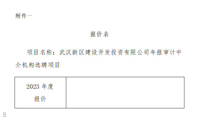 武漢新區(qū)建設(shè)開(kāi)發(fā)投資有限公司2023年度年報(bào)審計(jì)中介機(jī)構(gòu)選聘項(xiàng)目