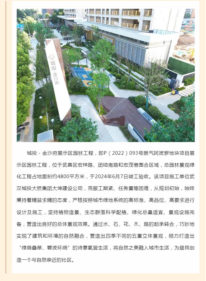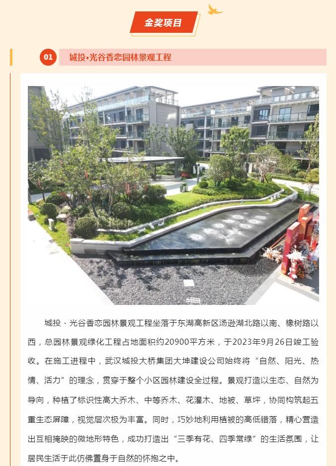 四金一銀,武漢城投捧回一批市級園林綠化優(yōu)質工程獎