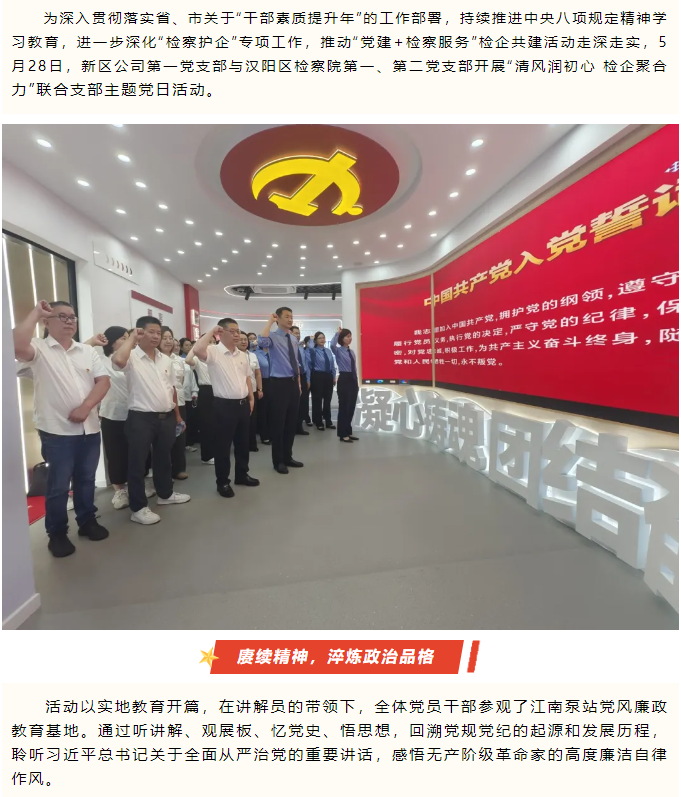 清風(fēng)潤初心 檢企聚合力--漢陽區(qū)檢察院、新區(qū)公司聯(lián)合支部主題黨日活動